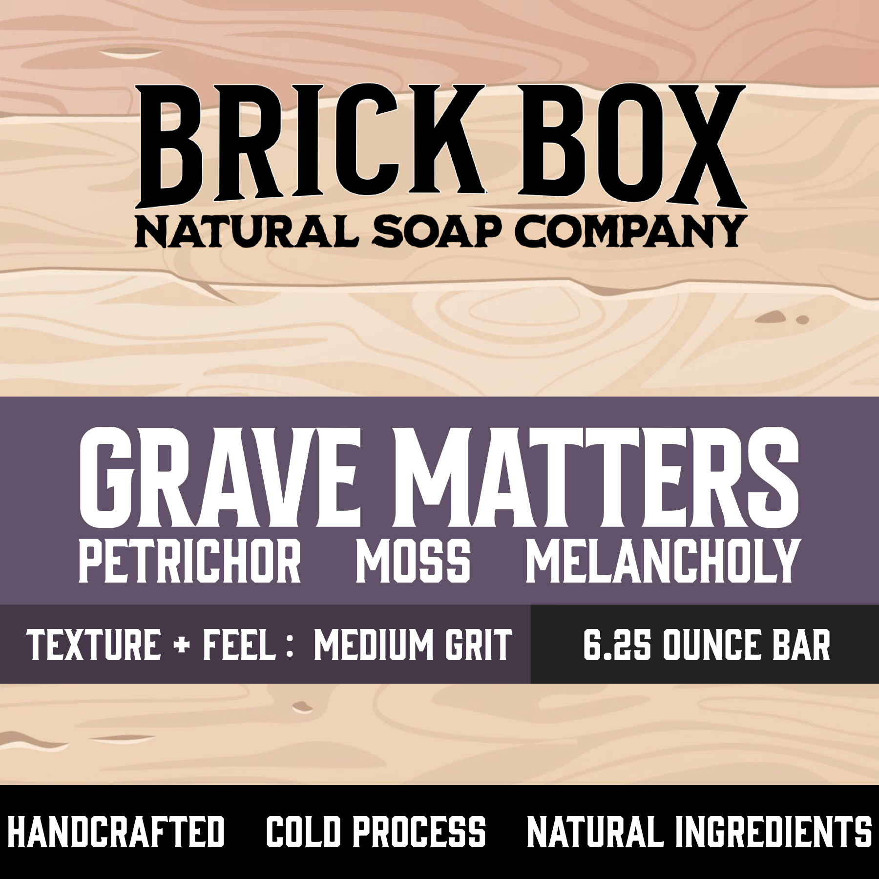 Mysterious and ethereal, GRAVE MATTERS captures the haunting allure of an old cemetery. Top notes of freshly turned earth give way to moss draped over weather headstones. The scent comes to rest on a warm base of cedarwood, with ground fennel in the mix adding a faint black licorice undertone. Seductive and alluring, this brick holds a strong masculine edge.